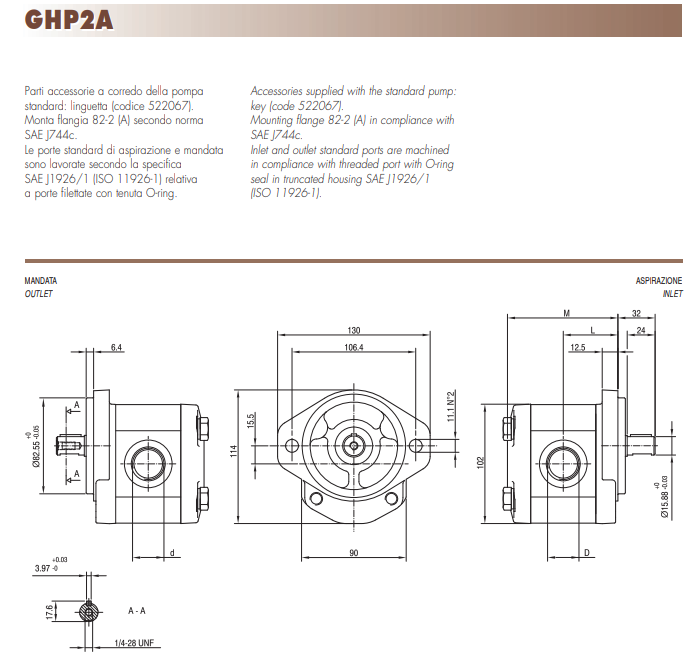 Marzocchi 馬祖奇GHP2A系列的GHP2A-D-6,GHP2A-D-9,GHP2A-D-10,GHP2A-D-12,GHP2A-D-13,GHP2A-D-16,GHP2A-D-20,GHP2A-D- 25,GHP2A-D-30,GHP2A-D-40液壓齒輪泵