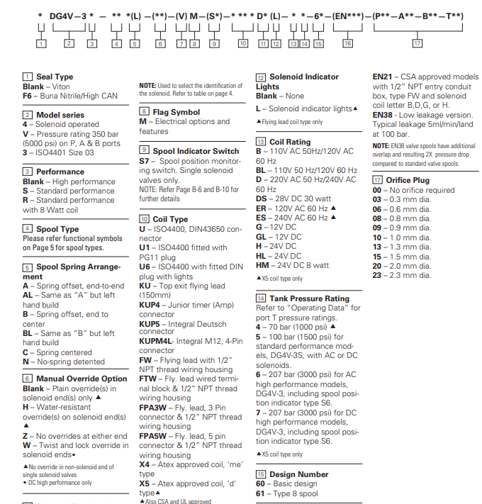 2.閥門類型 DG4V –底板安裝的電磁方向控制閥(350 BAR [5000 PSI])