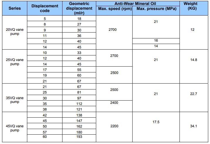 - 可與原裝Vickers液壓泵互換同一型號。