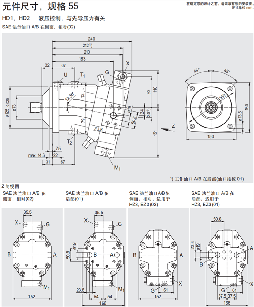 A6VM55系列力士樂(lè)軸向柱塞變量馬達(dá)安裝尺寸