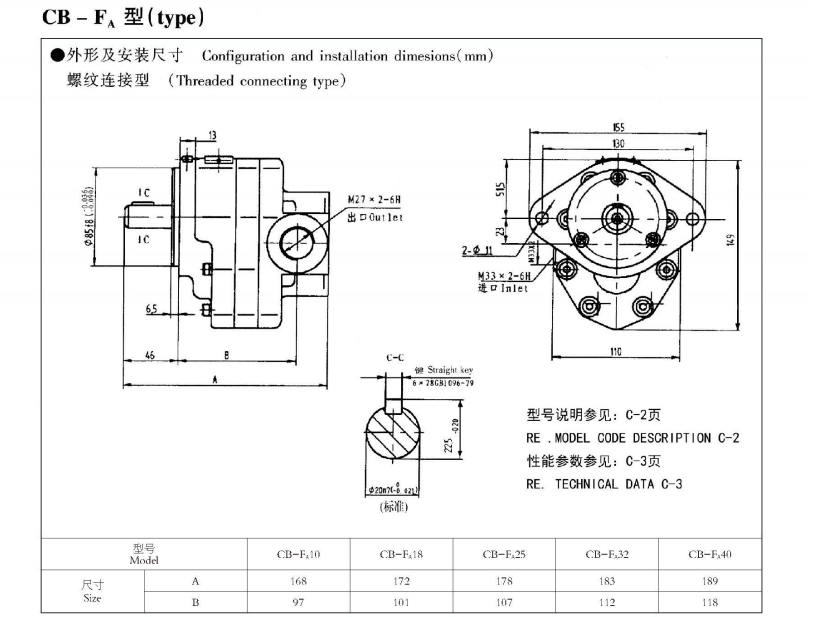 CB-Fa系列齒輪泵外形及安裝尺寸: