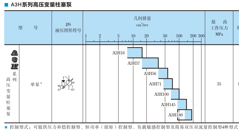 A31116~A311180的7個規(guī)格中,包含有16.3~180.7cm3/rev范圍內(nèi)。