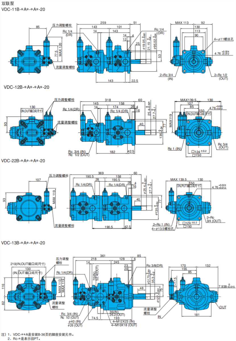 不二越VDC系列高壓變量葉片雙聯(lián)泵規(guī)格: