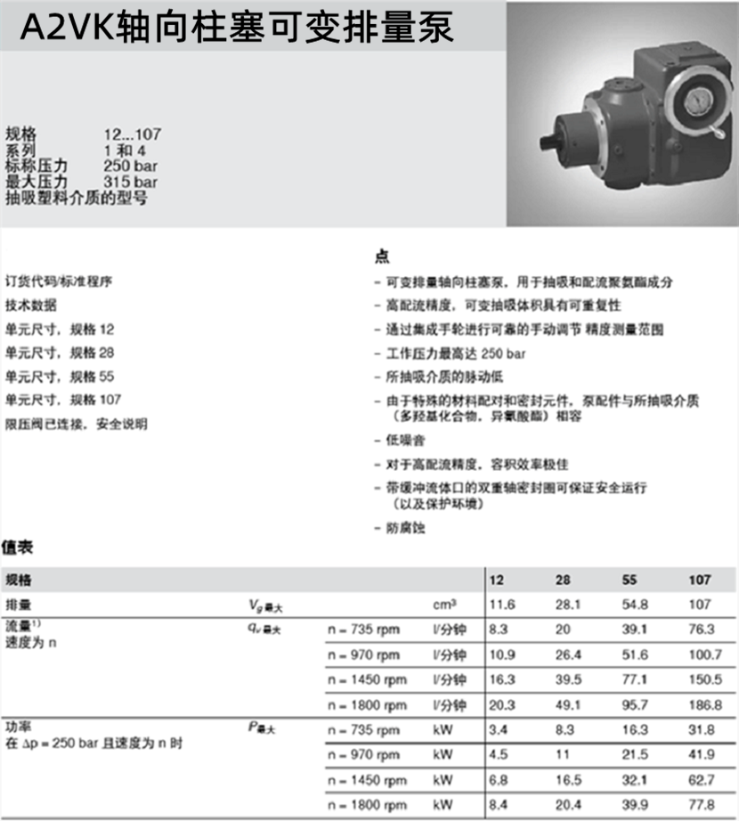 ▲可變排量軸向柱塞泵,用于抽吸和配流聚氨酯成分