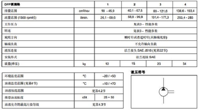 DFP泵是固定排量葉片泵,由四種不同的尺寸制成,分為五種標(biāo)稱(chēng)排量。它們可以使用單個(gè)泵送元件(單泵)或雙泵元件(雙泵)。