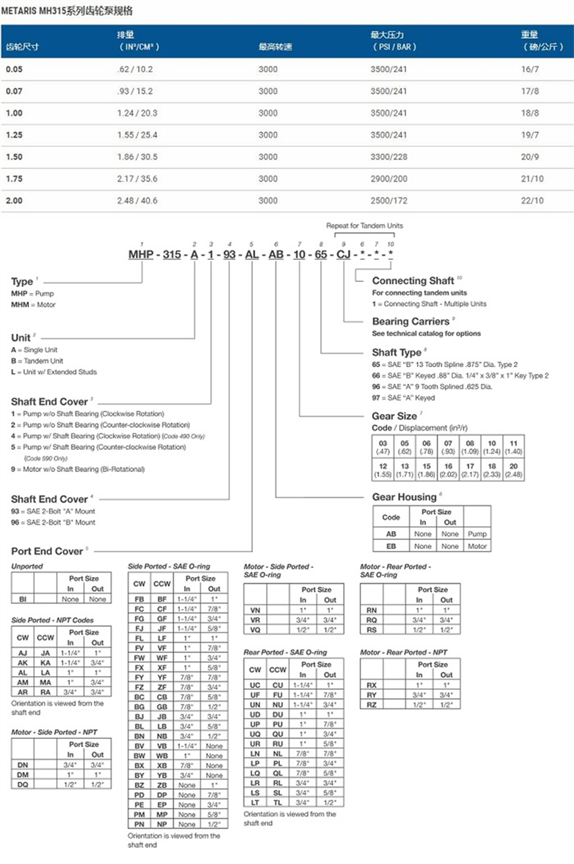意大利麥塔雷斯METARIS MH315系列立交齒輪泵