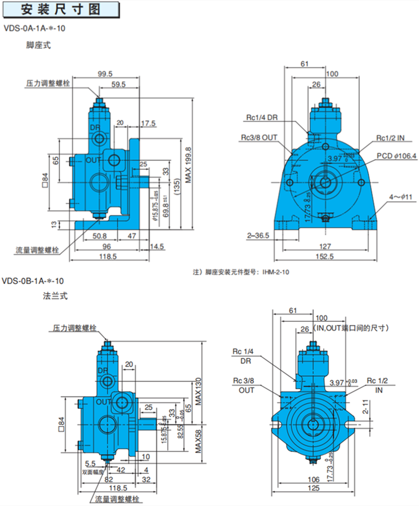 VDS -不二越可變?nèi)莘e葉片泵安裝尺寸圖: