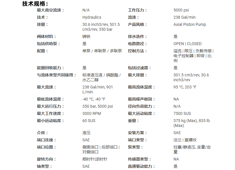 總之,Parker派克金杯系列液壓泵與電機以其卓越的性能、廣泛的應(yīng)用領(lǐng)域以及先進的技術(shù)優(yōu)勢,成為了流體傳動與控制領(lǐng)域的佼佼者。無論是開式還是閉路應(yīng)用,金杯系列都能為用戶提供可靠、高效、易用的解決方案。未來,隨著技術(shù)的不斷進步和應(yīng)用領(lǐng)域的不斷拓展,相信Parker派克金杯系列液壓泵與電機將會迎來更加廣闊的發(fā)展前景。