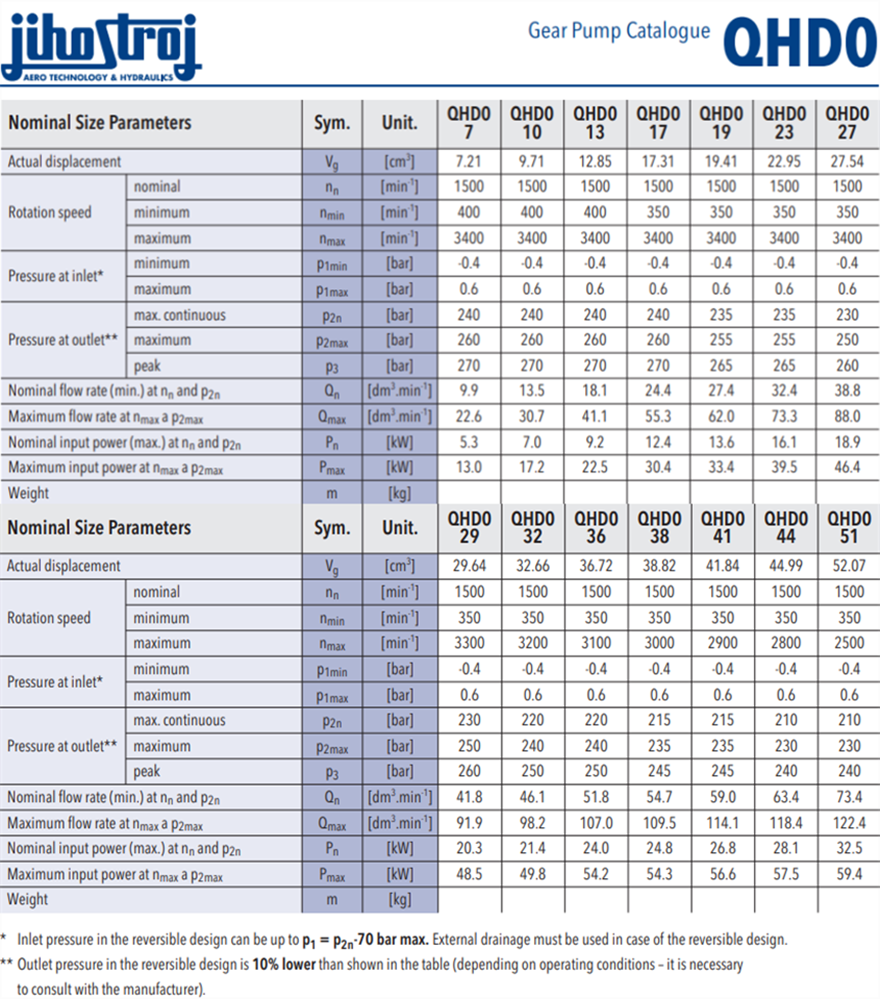 QHD0系列捷克JIHOSTROJ齒輪泵型號參數(shù):
