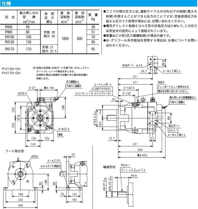 東京計器柱塞泵PH系列:PH80、PH100、PH130、PH170