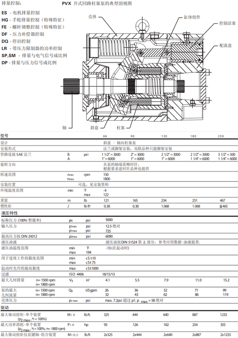 威格士柱塞泵(Vickers柱塞泵)PVXS系列:PVXS-066、PVXS-090、PVXS-130、PVXS-180、PVXS-250