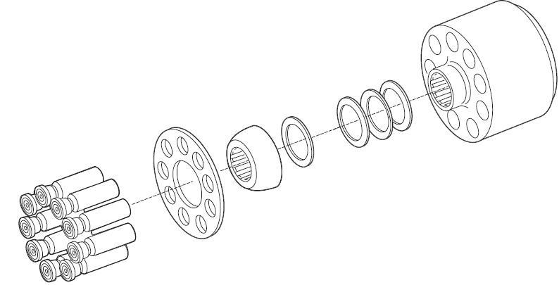 柱塞和回程盤(pán)一起取出壓緊彈簧取出球鉸
