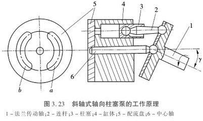 柱塞與缸孔組成的工作容腔中的油液通過配油盤分別與泵的吸、排油腔相通。